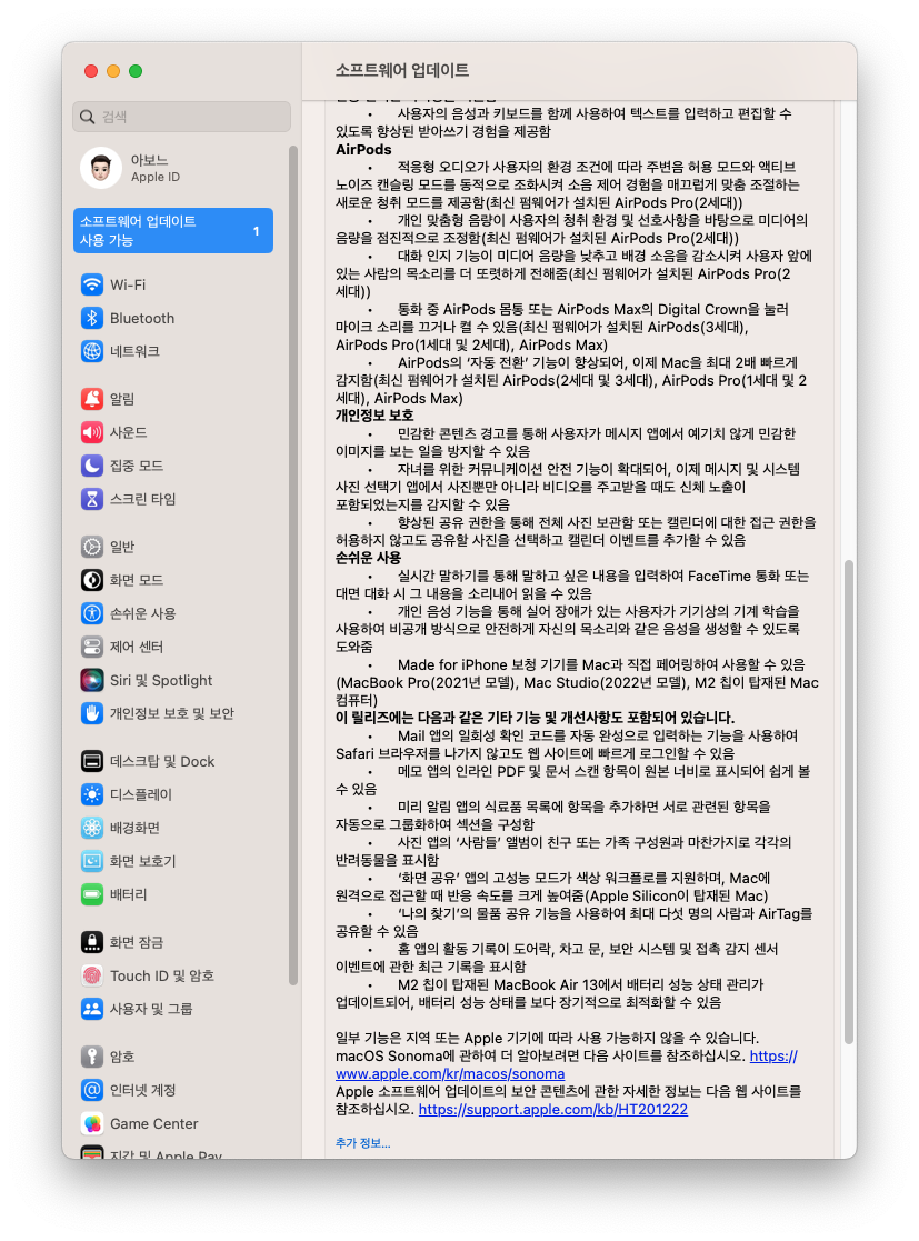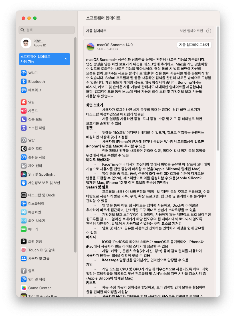 "새로운 맥os 소노마 14.0 업데이트 내용입니다."