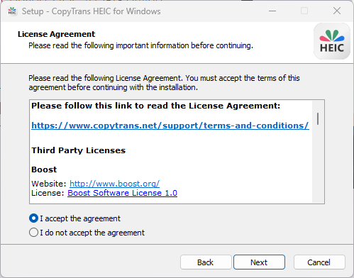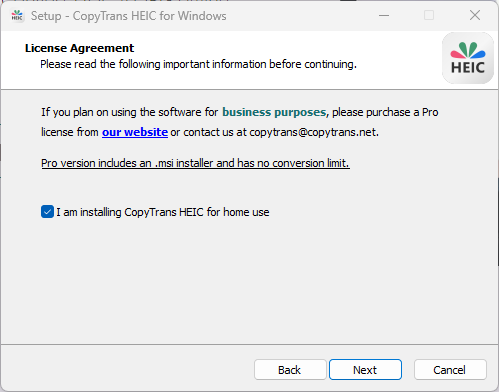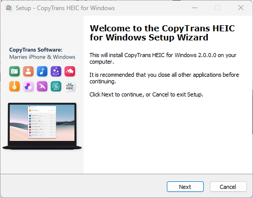 CopyTransHEICforWindowsv2.000.exe 아래 파일을 실행합니다.