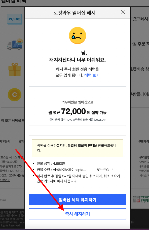 로켓와우 멤버십 해지하기 클릭