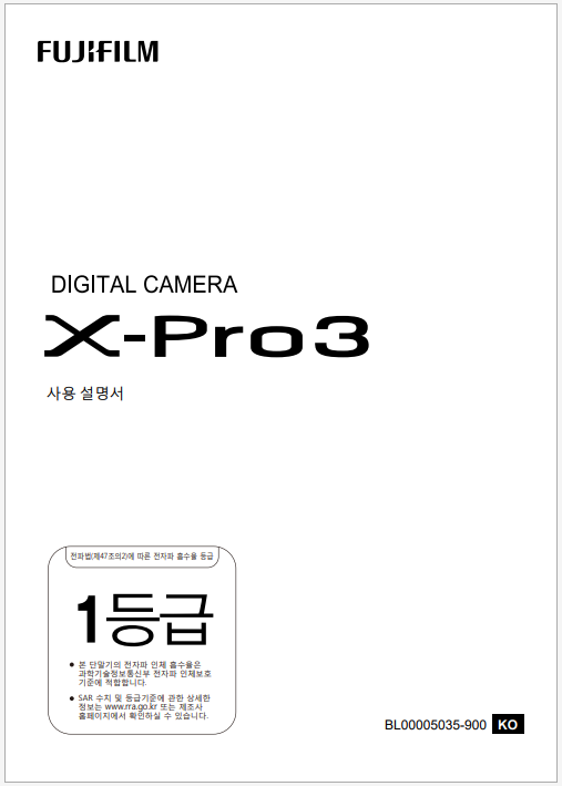"FUJIFILM 카메라 XPRO3의 설명서 PDF 파일을 다운로드 받을 수 있습니다."