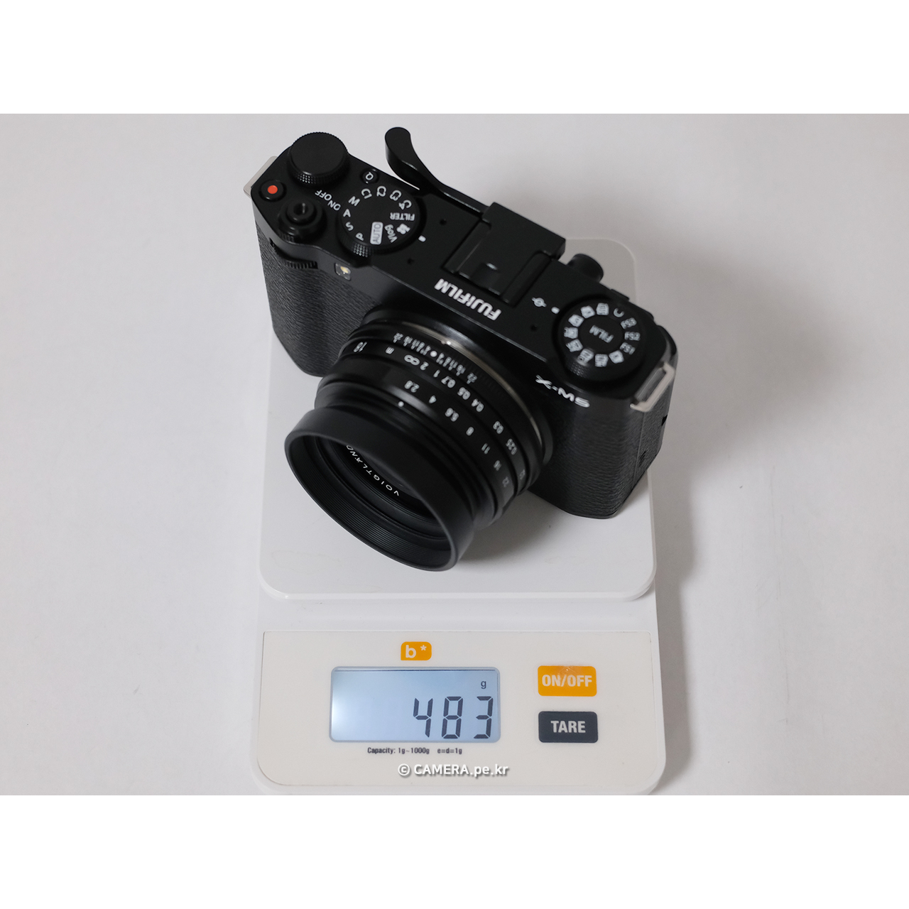 무게: FUJIFILM X-M5(엄지그립,메모리,배터리 포함 363g) + 보이그랜더 렌즈(후드 포함 120g) = 483g